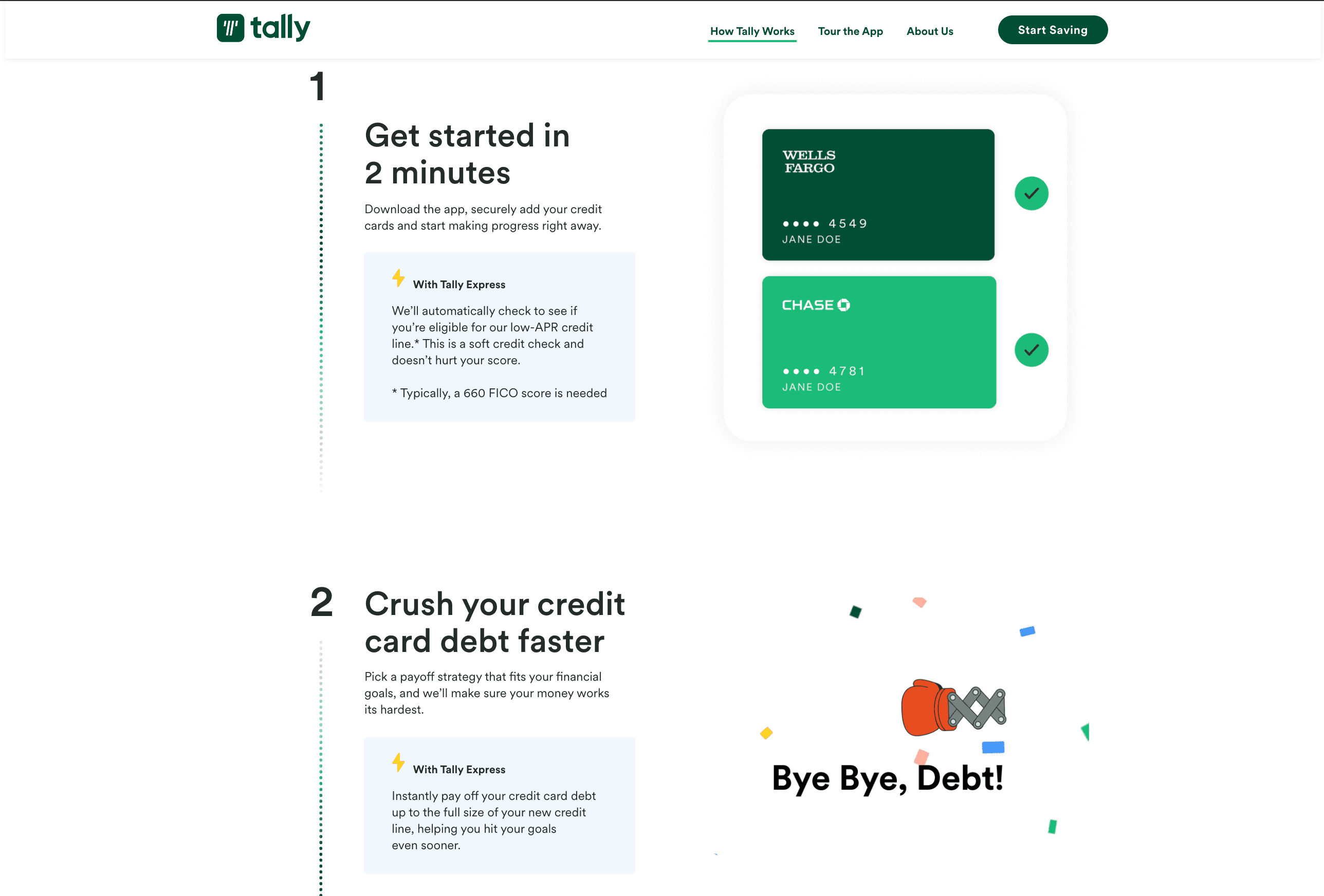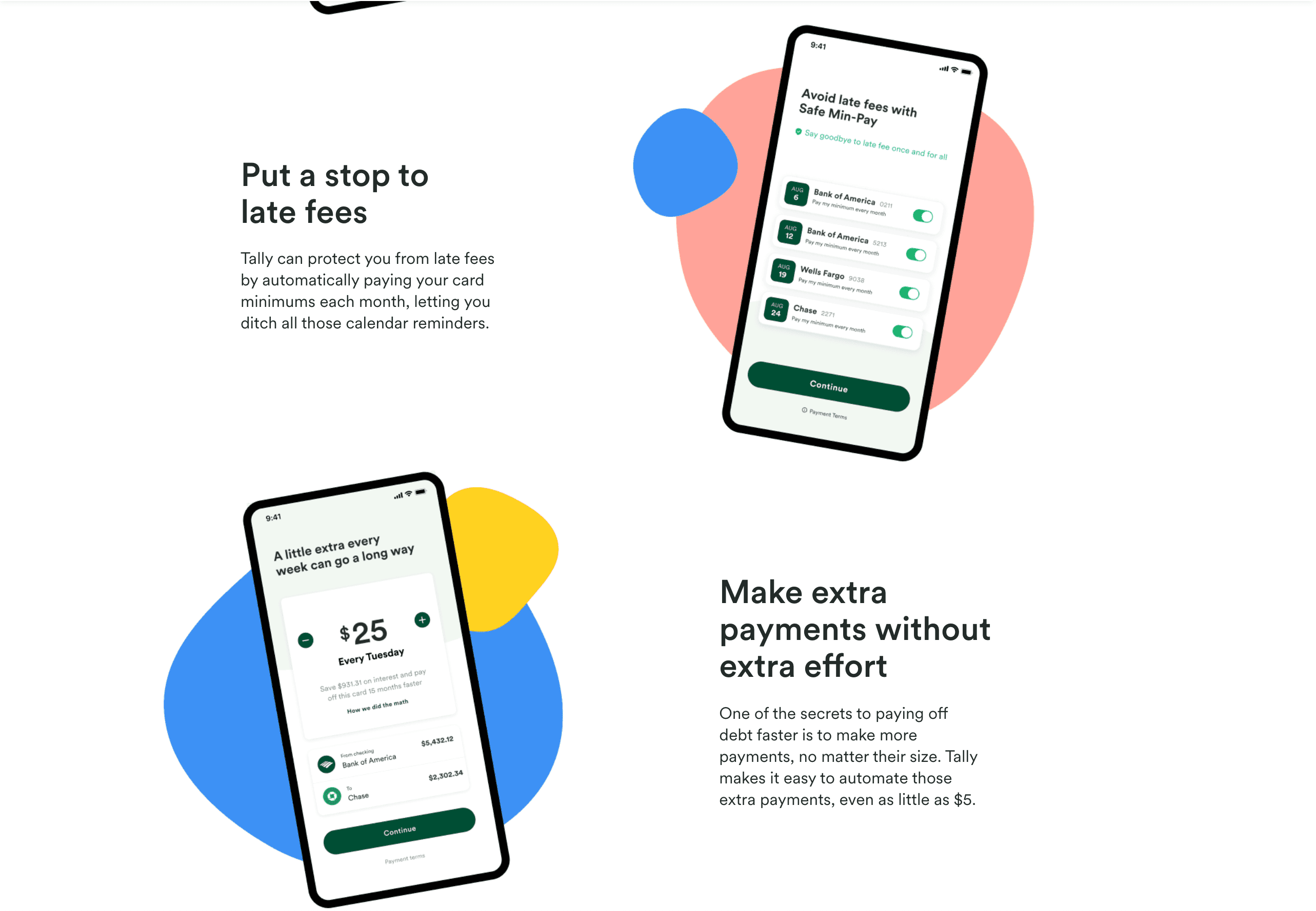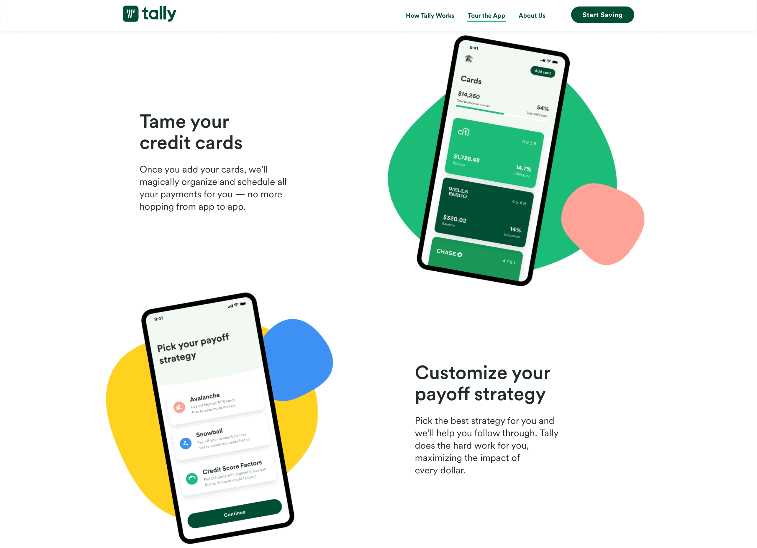 Tally is a personal financial services app that streamlines and automates credit card debt management to save time, money, and stress.