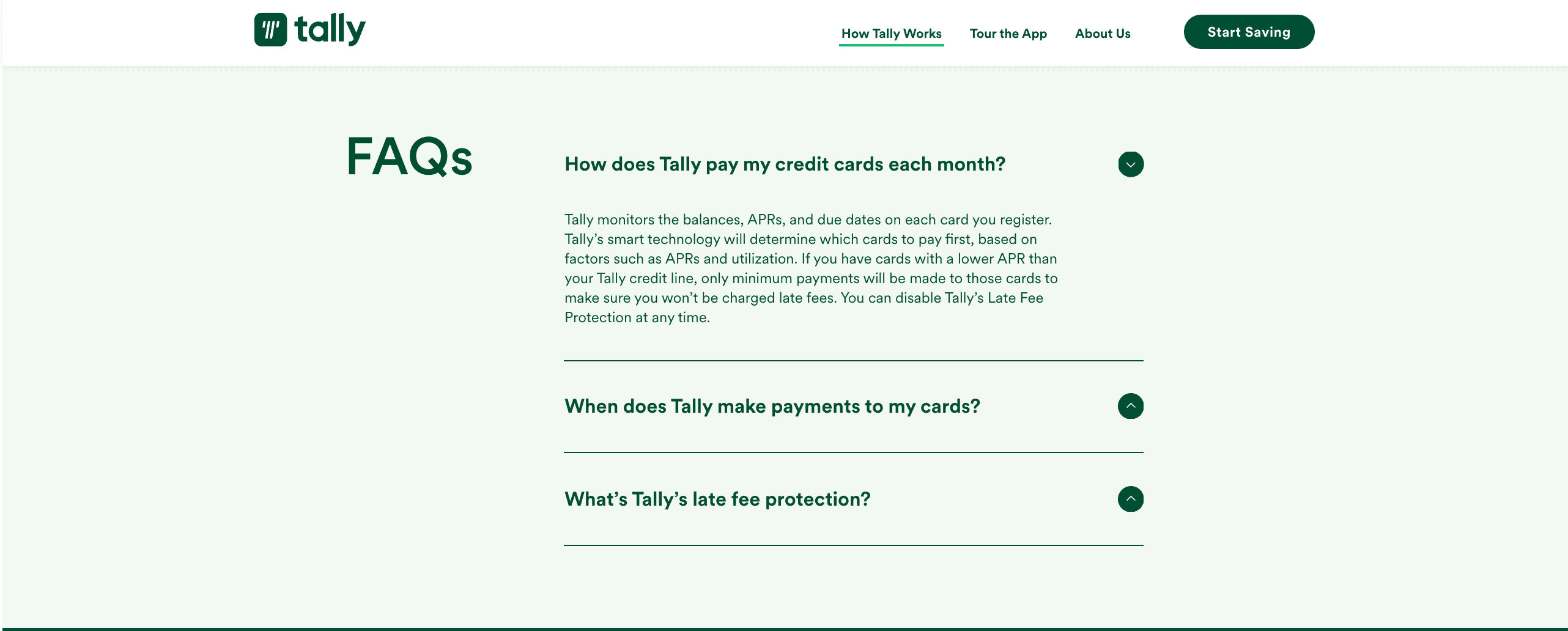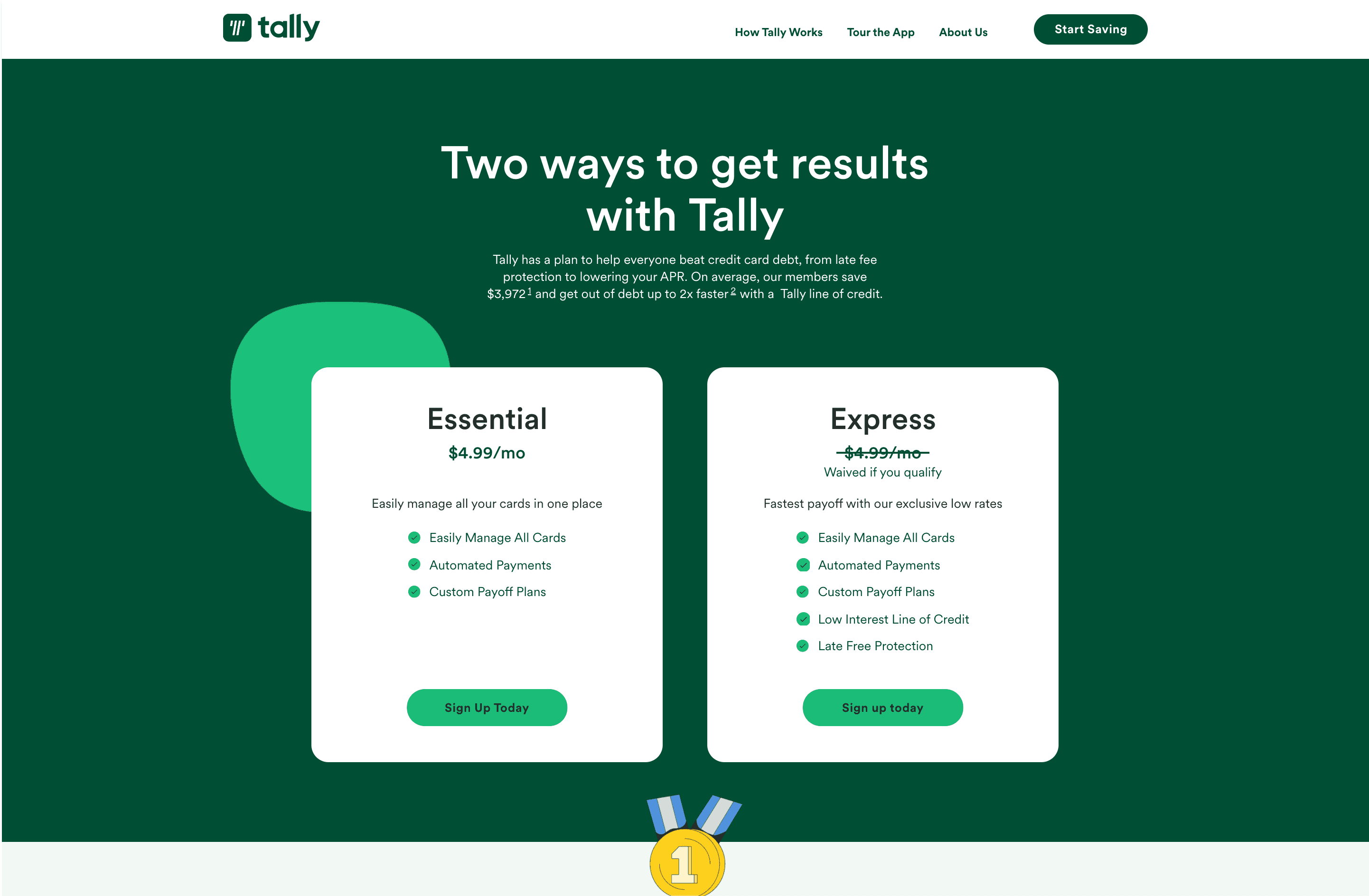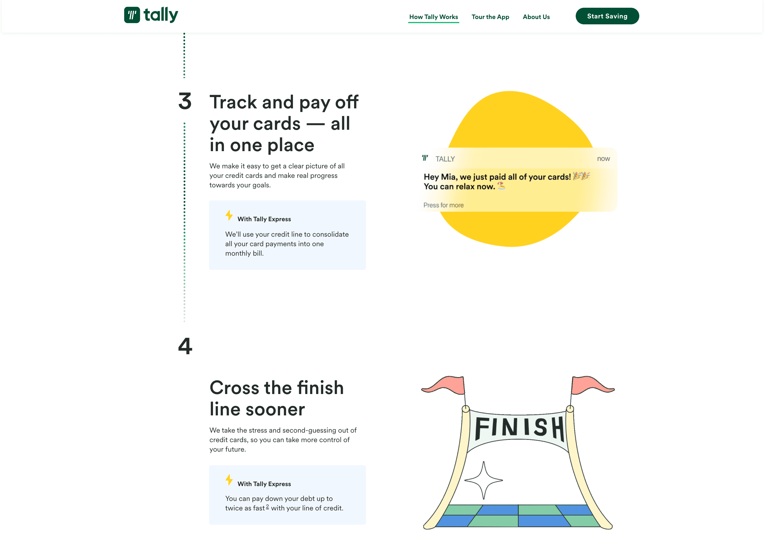 Tally is a personal financial services app that streamlines and automates credit card debt management to save time, money, and stress.