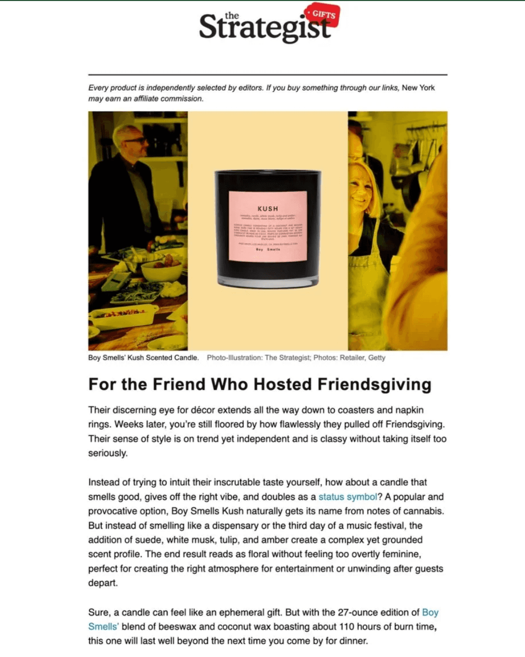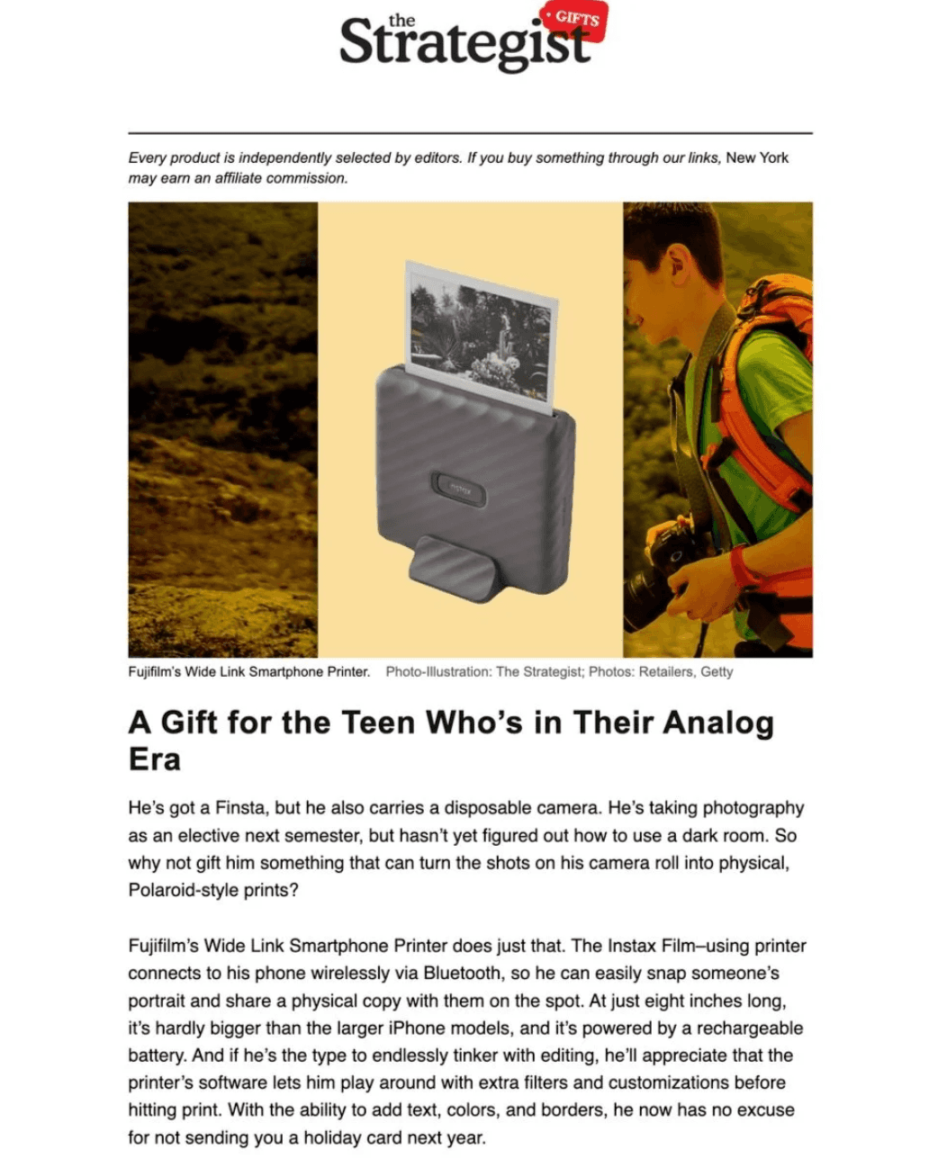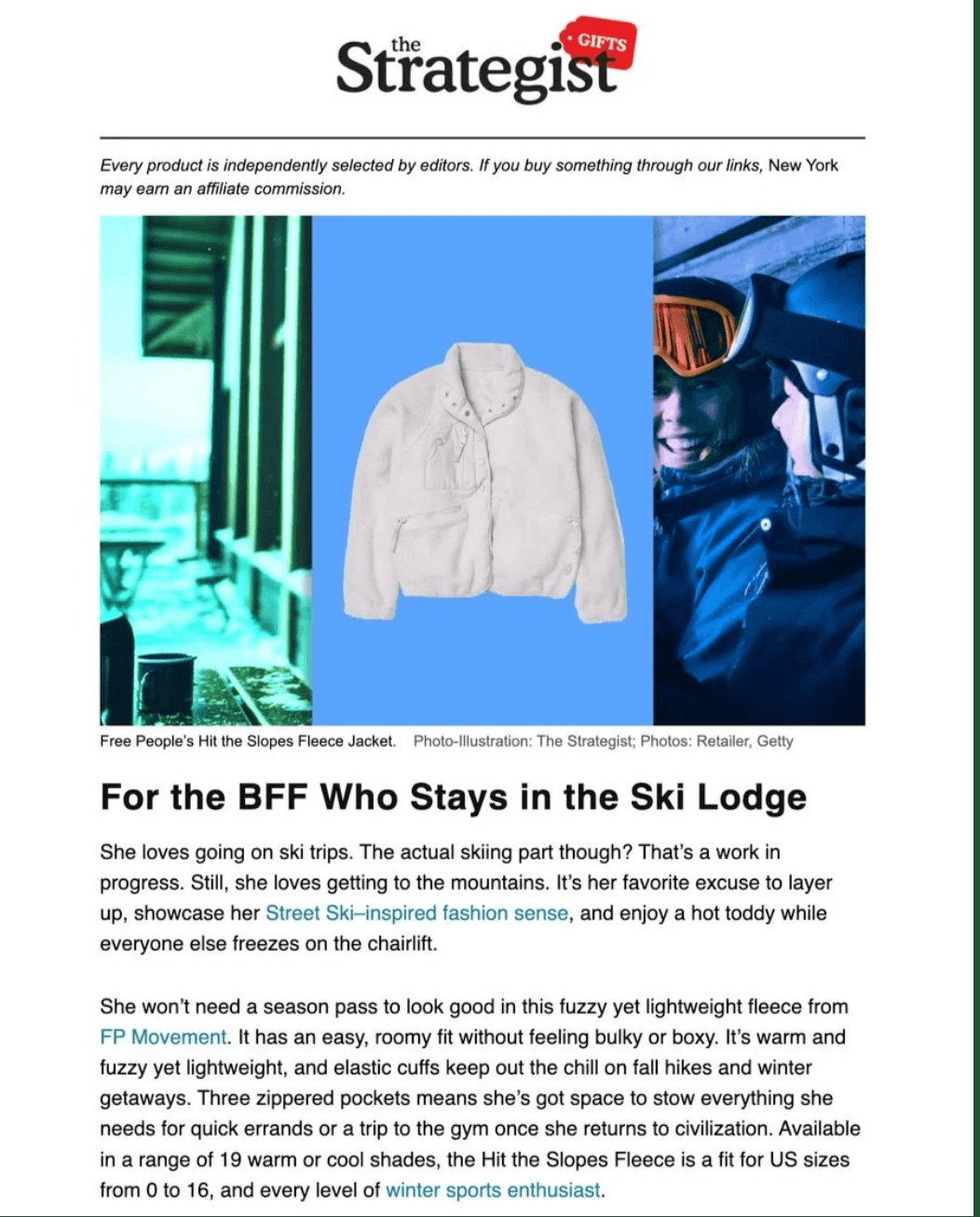 Execute a holiday shopping-themed affiliate marketing campaign by giving readers of the Strategist's widest-read newsletter a clear idea of who each day's product is for.